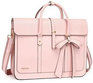 MOSISO Laptop Bag for Women, 15-15.6 inch PU Leather Laptop Shoulder Bags Convertible Backpack, 16 inch Messenger Bags Casual Handbag Work Briefcase Travel Computer Bag with Bowknot, Pink