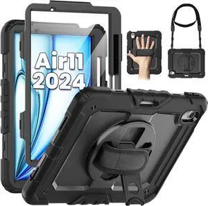 BONAEVER Case for iPad Air 11 inch 7th 6th Generation M3 M2 2025 2024, Heavy Duty Shockproof Protective Cover with Screen Protector, Stand and Hand/Shoulder Strap