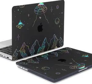 KEROM Clear Black Case for MacBook Pro 13 inch 2022-2016 M2 M1 A2338 A2289 A2251 A2159 A1989 A1706, MacBook Pro 13 inch Clear Case with Design, Plastic Hard Shell Case & Keyboard Cover, Planet