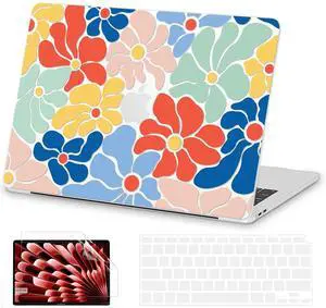 AKIT Compatible with MacBook Air 15 Inch Case 2025 2024 2023 M4 M3 M2 A3241 A3114 A2941, Unique Pattern Hard Shell Laptop Case+Keyboard Cover+Screen Protector for Mac Air 15 Inch, ColFlowersD2