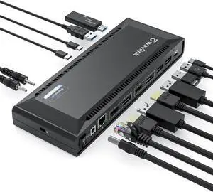 Displaylink Triple Display Docking Station for MacBook M1/M2/Windows, Minisopuru Universal Laptop Docking Station with 2 HDMI & 2 DisplayPort,100W Charge, USB-C Data, Ethernet, Audio,4 USBA Ports