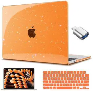 CISSOOK Compatible with MacBook Air 13.6 inch Case 2025 2024 2023 2022, Hard Shell Case Keyboard Cover for MacBook Air 13 inch M2 M3 M4 Chip A3240 A3113 A2681, Glitter Orange