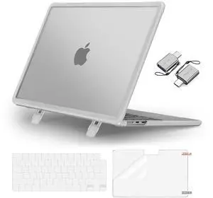 MOSISO Compatible with MacBook Air 13 inch Case 2025 2024 2023 2022 M4 A3240 M3 A3113 M2 A2681, Heavy Duty Hard Case with Kickstand&Keyboard Cover&Screen Film&Type C for MacBook Air 13.6, Translucent