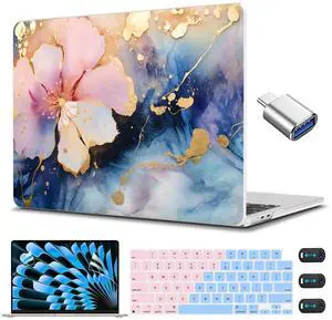 CISSOOK Compatible with MacBook Air 15 inch Case M4 M3 M2 2025 2024 2023 Release, Plastic Hard Shell Case & Keyboard Cover & Screen Film for MacBook Air 15.3 inch A3241 A3114 A2941, Marble Flower