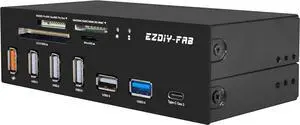 PC Front Panel Internal Card Reader USB HUB USB 3.1 Gen2 Type-C Port USB 3.0 Support SD MS XD CF TF Card for Computer Fits Any 5.25 Computer Case Front Bay