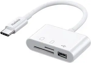 USB C SD Card Reader Type C Digital Camera Adapter Plug & Play for iPhone 15/16/17 Pro Max iPad MacBook Galaxy Durable TPE Material for Trail Camera Photographers & Travelers White