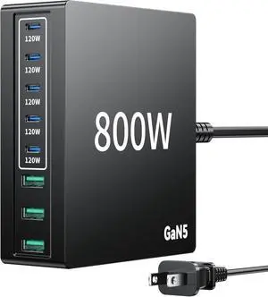 880W USB C Charger Block Charging Station 8 Port Fast Chager 140W PD PPS AVS HUB Laptop MacBook Charger Compatible with All iPhone 17 Pro Max/17 Air/16 SE/Samsung Galaxy 25/ MacBook Pro/Air/iPad Pro
