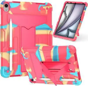 anicestore Case for Apple iPad Air 11 Inch M3 2025/M2 2024 - Heavy Duty Shockproof Rugged Protective Case with Pencil Holder for iPad Air 7th/6th/5th/4th Generation 10.9" 11" - Rainbow/Pink