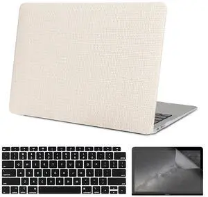 iNOTOGG Compatible with MacBook Pro 13 Inch Case 2022-2016, A2338 M1 M2/A2289/A2251/A2159/A1989/A1706/A1708 Touch Bar & Touch ID, Braided Pattern Hard Case with Keyboard Cover & Screen Protector,White