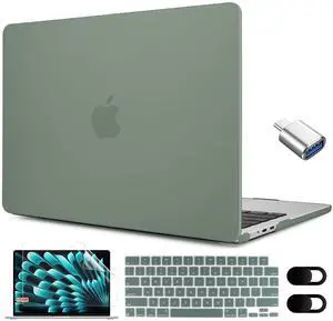 MEEgoodo Clear Case for M4/M3/M2 MacBook Air 15 inch 2025 2024 2023(Fit Model A3241/A3114/A2941),Laptop Hard Shell with Keyboard & Camera Cover & OTG Adapter for MacBook Air 15.3",Matte Midnight Green