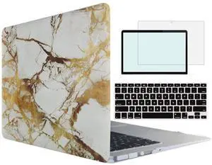 TOJIA Compatible with MacBook Pro 13 Case,4 in 1 Rubberized Hard Cover with Keyboard Skin Screen Shell for MacBook Pro 13 Inch w/Out Touch Bar Touch ID Model:A1708 A1988, Marble Gold