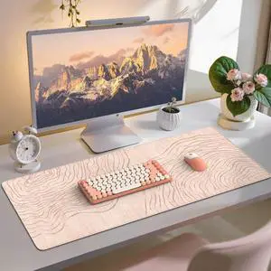 iCasso Big Mouse Pad,Aesthetic Desk Cover Mat for Desktop,Anti-Slip Computer Mat with Stitched Edges,Cute Beige Keyboard Mat for Women,Extended Long Desk Protector for Office Home Dorm