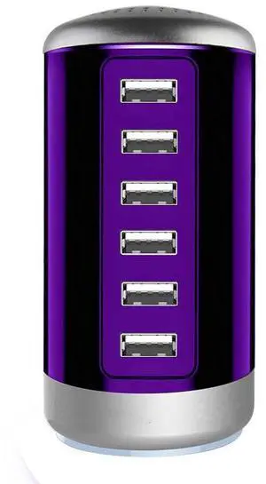 Universal USB Charger 6-Port Desktop USB Charging Station Hub with Smart Identification Technology Compatible with iPhone iPad Cell Phone Tablets(Purple)