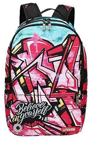 UNIKER Teens Graffiti Backpack for School,Casual Daypack with USB Charging Port,Designer Laptop Backpack for Laptop 15.6 Inch,High School Backpack Pink
