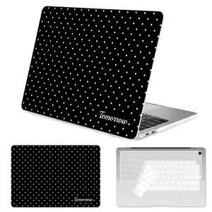Seorsok Compatible with MacBook Air 13 Inch Case 2022 2021 2020-2018 Release A1932 A2179 M1 A2337 Touch ID,Premium Cream Textured White Polka Dot Plastic Hard Shell Case with Keyboard Cover,Black