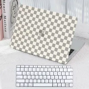 Checkered Case for MacBook Air 15 inch 2025 2024 2023 M4 M3 M2 A3241 A3114 A2941, Classy Luxury Textured Checker Checkerboard Grid Pattern Cream PU Leather Hardshell & Keyboard Cover, Beige Checkered