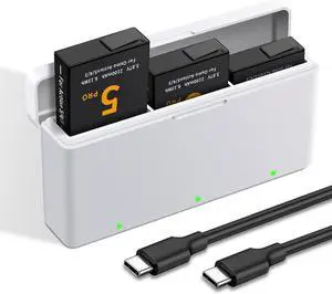 3-Pack Osmo 360 Battery for Osmo Action 6 5 Pro 4 3 Charger and 3-Channel Fast Charger Hub, Compatible for DJI Osmo Action 6, Action 5 Pro, Action 4, Action 3 Camera, with Micro-USB to Type-C Cable