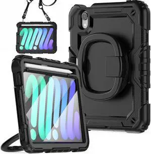 BONAEVER Case for iPad Mini 7 (A17 Pro) 2024 / iPad Mini 6 8.3'' with Screen Protector Pencil Holder [360 Rotating Hand Strap] &Stand, Drop-Proof Shockproof Cover for iPad Mini 7th/6th Generation 8.3"