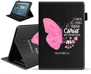 WEUIUJKILO Case for Fire Max 11 Tablet (11 Inch, 13th Generation, 2023 Release), Slim PU Leather Folding Stand Smart Cover with Auto Sleep/Wake, Butterfly Quote Bible Verse Philippians 4-13
