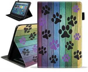 WEUIUJKILO Case for All-New Fire Max 11 Tablet (11 Inch, 13th Generation, 2023 Release), Slim PU Leather Folding Stand Smart Cover with Auto Sleep/Wake, Dog Paw Prints on Wood Pattem