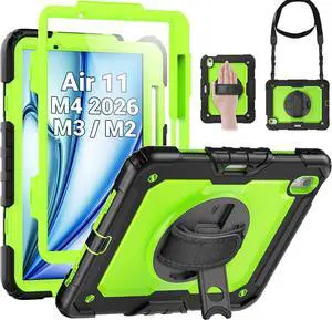 for iPad Air 11 inch Protective Case M3 2025/ M2 2024 (Air 7th/6th Generation), Heavy Duty Case with Screen Protector, Pencil Holder, Rotating Stand, Hand Strap, Shoulder Strap, Green
