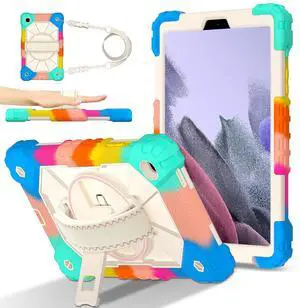 WERLEO Case for Samsung Galaxy Tab A7 Lite 2021 8.7' inch SM-T220/T225/T227 with Rotating Stand Pencil Holder Hand/Shoulder Strap, Heavy Duty Shockproof Protective Cover Rainbow