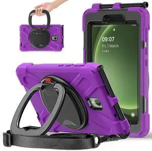 FONREST Rugged Case for Samsung Galaxy Tab Active5 5G (SM-X306B/X300) w/ 360 Rotating Hanging Ring Handle Grip Kickstand, Heavy Duty Shock-Proof Armor Cover w/Shoulder Strap, Stylus Holder (Purple)
