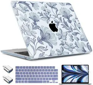 TWOLSKOO for MacBook Air 13 inch Case M4 A3240 M3 A3113 M2 A2681 2025 2024 2022 Plastic Hard Shell, Keyboard Cover, Type C Adapter, Screen Protector for MacBook Air 13.6 inch, Vintage Floral