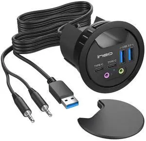 In Desk USB 3.0 Hub with Audio Jack THC06-VI (2x USB Type A, 2x USB C) USB Power Port Charger Extension Outlet for 60mm and 80mm Grommet Hole, Desktop Cable Organizer, Headsets Mic Charging Adapter