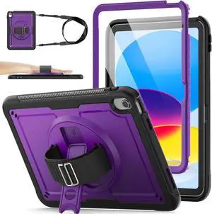 Case for iPad A16 11-inch Case 2025/ for iPad 11th/ 10th Generation 10.9'' 2022, Protective with Screen Protector, Pen Holder, Rotate Stand, Loop Nylon Hand Strap, Shoulder Strap, Purple