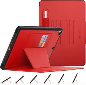 Case for iPad 9th/8th/7th Generation 10.2'', Strong Magnetic Auto Sleep Shockproof Case with Absorbing Multi-Angles Stand, Pen Holder, Card Slot (Red)