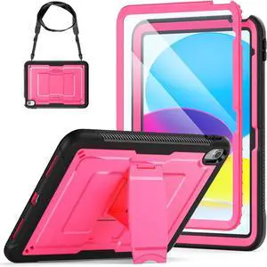 Case for iPad (A16) 11th/10th Generation 11''/10.9'' 2025/2022, with Built-in Screen Protector, Shoulder Strap, Built-in Kickstand, Rugged Full Body Shockproof Protective Case, Pink