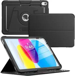 Rotating Case for iPad (A16) 11th/10th Generation 11''/10.9'' 2025/2022, 360° Rotation Protective Stand Case with Portrait/Landscape Mode, Detachable Swivel Cover, Auto Wake/Sleep, Black