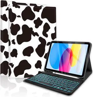 TopPerfekt for iPad 9th Generation Keyboard Case 10.2" 2021, Magnetically Absorbent, Auto Sleep/Wake, Pencil Holder for iPad 8th Gen 2020, 7th Gen 2019, Air 3rd, pro 10.5" (Notebook Pink Cow)