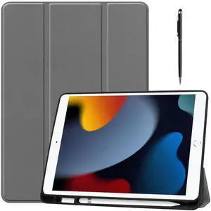 auaua Case for iPad 9th/8th/7th Generation 10.2 inch (2021/2020/2019 Released), with Pencil Holder, Vegan Leather, Auto Sleep/Wake Smart Cover (Gray)