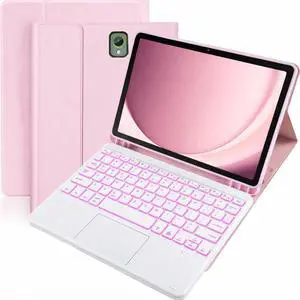 Case with Trackpad Keyboard for Samsung Galaxy Tab A9 8.7 inch 2023 Model SM-X110/SM-X115/SM-X117 with Smart Touchpad 7 Color Backlit Removable Keyboard Magnetic Case Cover Pink