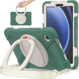 PboyiqiS Case for Galaxy Tab A9 8.7" 2023 (SM-X110/ X115), Heavy Duty Protective Case with 360 Degree Swivel Stand&Hand Strap&Shoulder Strap (Emerald Green)