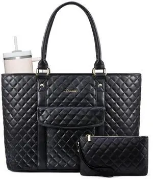 LOVEVOOK Laptop Tote Bag for Women 17 Inch,Waterproof Computer Bag for Laptop for Womens,Quilted Travel Work Tote Bags for Women,Stylish Laptop Bag Purse with Luggage Sleeve for Teacher,Nurse,Office