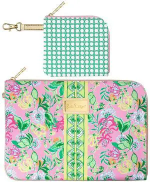 Lilly Pulitzer Padded Tech Sleeve with Small Zip Pouch for Accessories, Cute Laptop Case for Women, Tablet Bag or 13 Inch Laptop Sleeve, Via Amore Spritzer