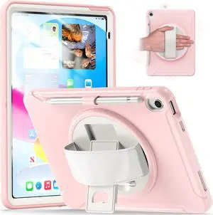 Case for iPad 10th Generation 10.9 Inch 2022 with Pencil Holder,360° Swivel Stand, Hand Strap, Heavy Duty Shockproof Rugged Protective Cover for iPad 10.9 Inch 2022 Release Pink