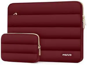 MOSISO 13.3 inch Laptop Case, 13-13.3 inch Puffy Laptop Sleeve Compatible with MacBook Air 13 13.6 M4 M3 M2 M1/Pro 13/Pro 14, HP Dell ASUS Lenovo,Polyester Horizontal Bag with Small Case, Red