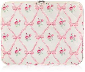 Abbylike Pink Bow Floral Laptop Bag 13 Inch Cute Preppy Puffy Laptop Sleeve Case Bag Computer Accessories Protective Cover Pink Coquette Bow Pad Case Pouch Gift for Women