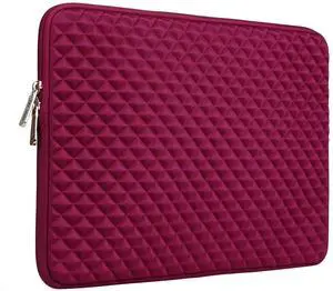 RAINYEAR 15.6 Inch Laptop Sleeve Diamond Foam Shock Resistant Neoprene Padded Case Fluffy Lining Zipper Cover Carrying Bag Compatible with 15.6" Notebook Computer Chromebook (Red)