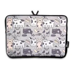 13-15 Inch Gray Cats Print Laptop Sleeve Case/Water-Resistant Neoprene Notebook Computer Pocket Tablet Briefcase Carrying Bag/Pouch Skin Cover for HP/Dell/Lenovo/Asus/Acer/Apple