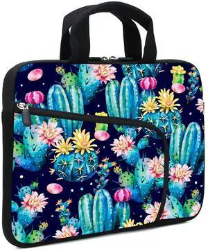 XMBFZ Laptop Sleeves 14 15 15.4 15.6 Chromebook Case Notebook Sleeve PC Messenger Bag Tablet Case Neoprene Handle Sleeve for Men Women, Two Pockets (Cactus)