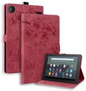 Dteck Folio Case Cover for 10.1" Fire HD 10 Tablet 9th/7th/5th Generation 2019/2017/2015 Release,Premium PU Leather Smart Stand Shockproof Protective Case with Auto Wake/Sleep for Fire HD 10.1,Winered