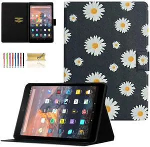 Dteck Case Fire 7 2019/2017/2015 Case, Premium Leather Lightweight Folio Case Cover Full Body Protective Multiple Viewing Angles Stand Case for Fire 7 Tablet 5th /7th/9th Generation, Daisy