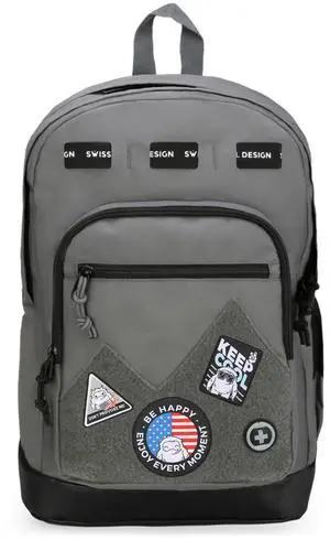 Swissdigital Design Cool Backpack, Stylish School Laptop Backpack with Fun Personalized Patches Fits 16 Inch Notebook, Travel Causal Bag Pefect for Boys & Girls, Grey | BERIKON - Includes 3 Patches