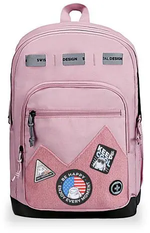 Swissdigital Design Big Student Laptop Backpack with Fun Personalized Patches For College Boy & Girl, Middle High School Teen Bookbag Cool Travel Daypack Pink -Includes 3 Patches ^^ SD1718-81
