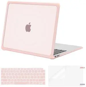 MOSISO Compatible with MacBook Air 13 inch Case 2022-2018 Release A2337 M1 A2179 A1932, Anti-Cracking Heavy Duty Plastic Hard Shell Case with TPU Bumper&Keyboard Cover&Screen Film, Pink